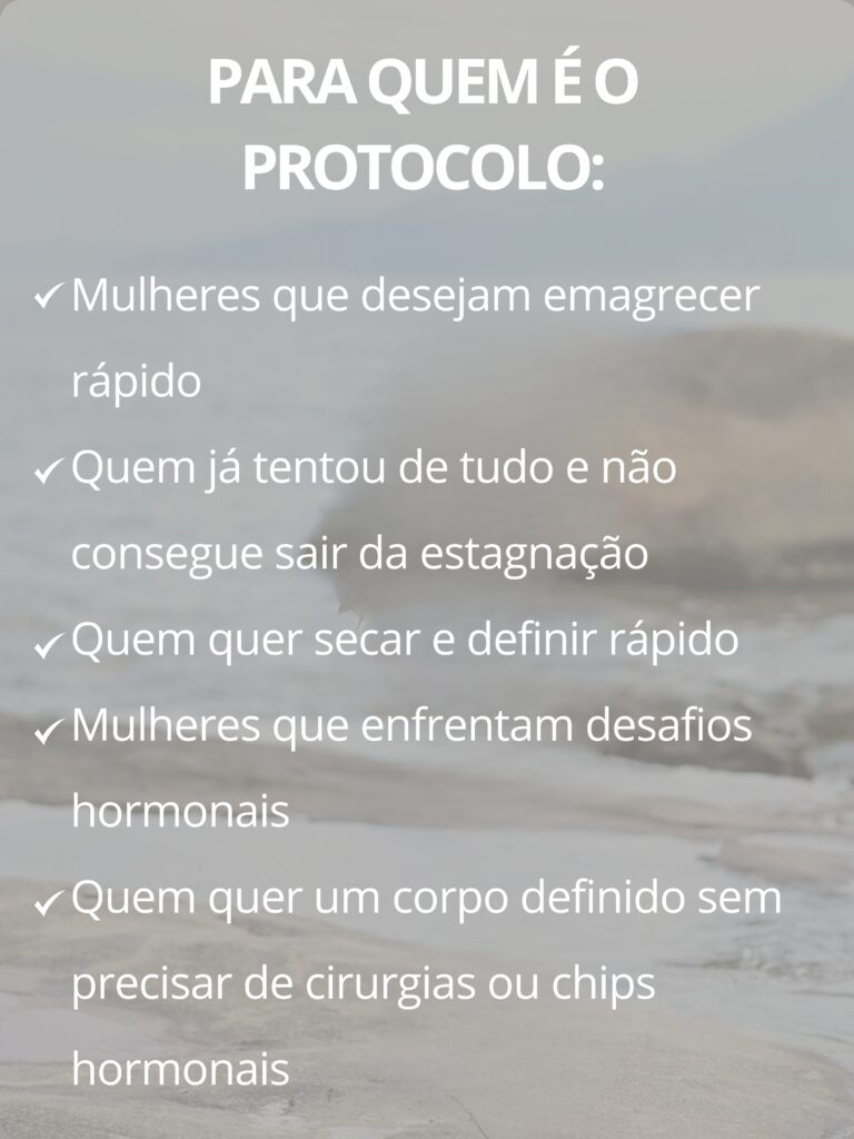 Com um método prático, alimentos naturais, você vai desbloquear o poder do seu metabolismo, regular hormônios, desinflamar e conquistar um corpo definido sem precisar recorrer a procedimentos invasivos.